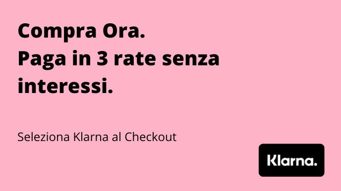 Seleziona Klarna al metodo di pagamento e acquista in tre comode rate il tuo prodotto!